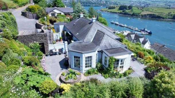 What a beautiful house perched up on the hill overlooking the bay in Kinsale, lavish garden, spectacular views...