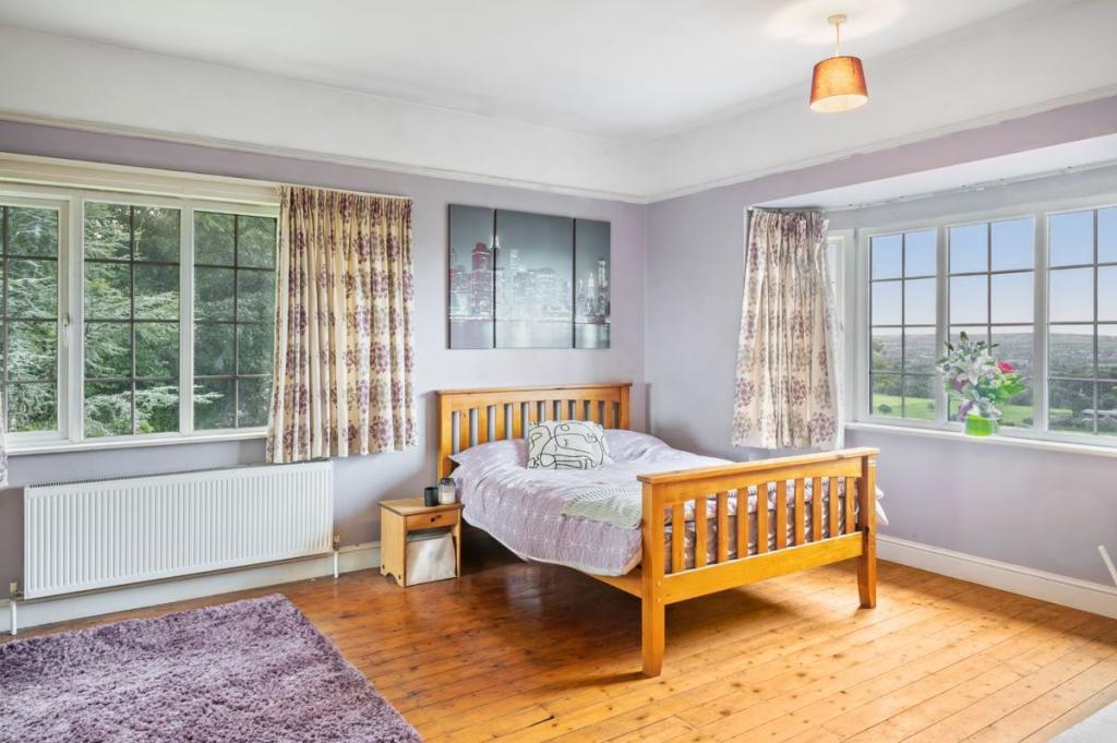 Master Bedroom 5.15m x 4.77m. The master bedroom is both bright and spacious with large windows framing stunning views to the south and west. The room also has the additional benefit of a large walk in wardrobe providing ample storage and features solid wood flooring throughout.