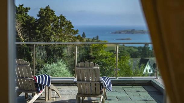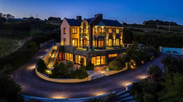 What a beautiful house perched up on the hill overlooking the bay in Kinsale, lavish garden, spectacular views...