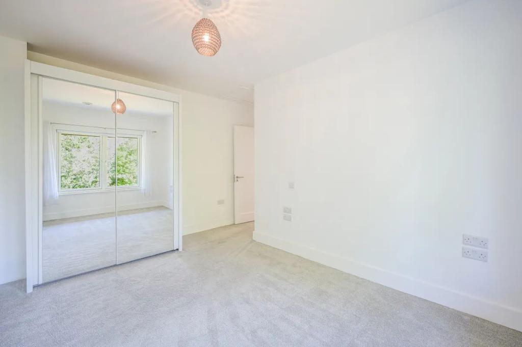 Bedroom 2 7.05m x 3.65m (23.13ft x 11.98ft) A relaxing front facing double bedroom with built in walnut mirrored wardrobe and built in display shelves for extra storage. Plenty of glazing overlooking mature planting to the front yet ensuring privacy, recessed lighting and finished in carpet.