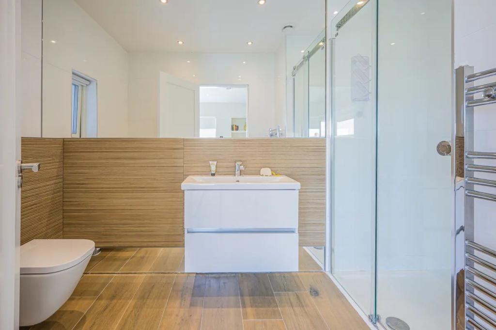 En-suite 2.10m x 1.80m (6.89ft x 5.91ft) A tastefully fully tiled three-piece suite with fitted, w.c. and wash hand basin. Recessed lighting, and LED mirror with sensor light.