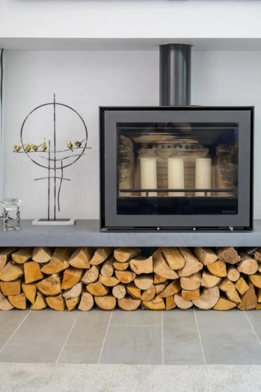 Lounge 6.00m x 4.10m (19.69ft x 13.45ft) Located off the reception hall and accessed via high glazed double doors this room is cosy and inviting. With an unusual feature of a wall that slides by remote and disappears this room can be opened up into the balance of the reception rooms of this home. Finished with underfloor heating as is standard across the property with Porcelanosa tiles this room is arranged around a stovax ELISE stove however given the A2 energy rating it is purely an atmospheric feature. Standing on a limestone raised plinth used in the external elevations of this home this feature is unique.