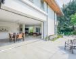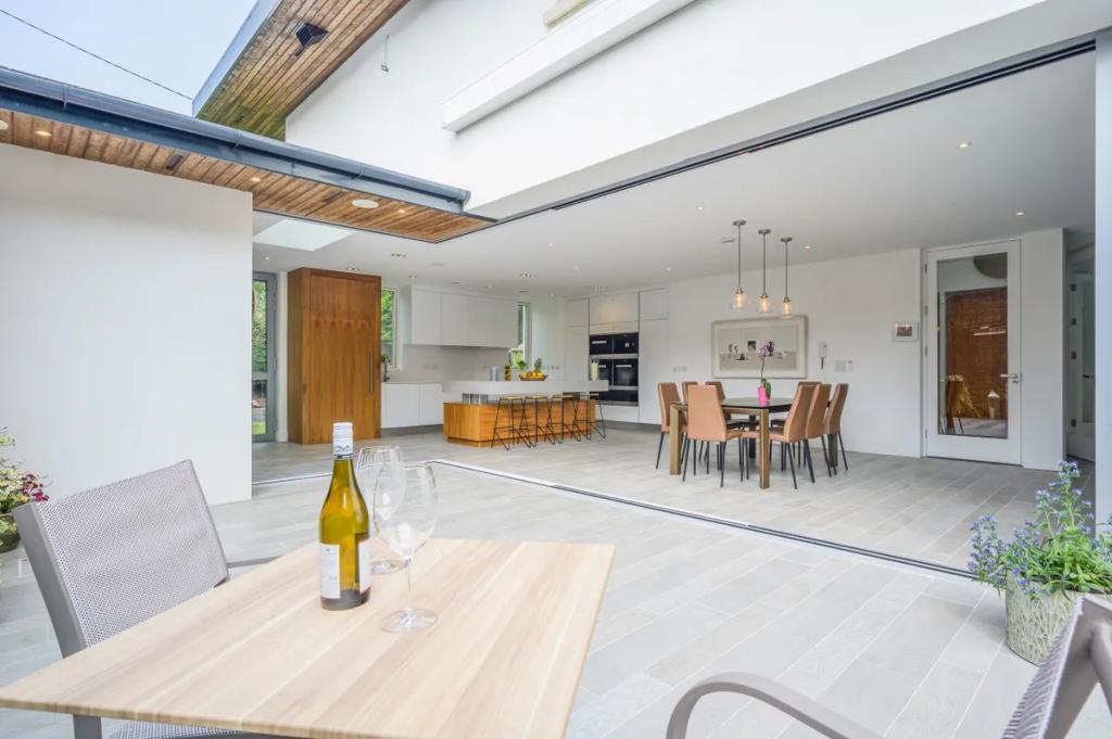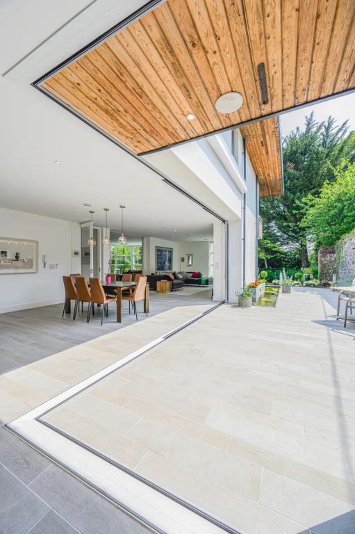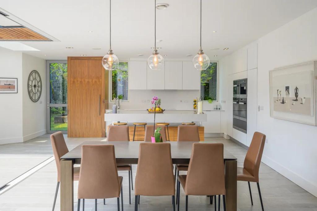 Dining Area 4.85m x 4.60m (15.91ft x 15.09ft) An easy flow into this space from the kitchen the dining is arranged with pendent lighting set over the dining table. A return wall of glazing opens and hides away to connect this dining to that in the courtyard directly adjacent.