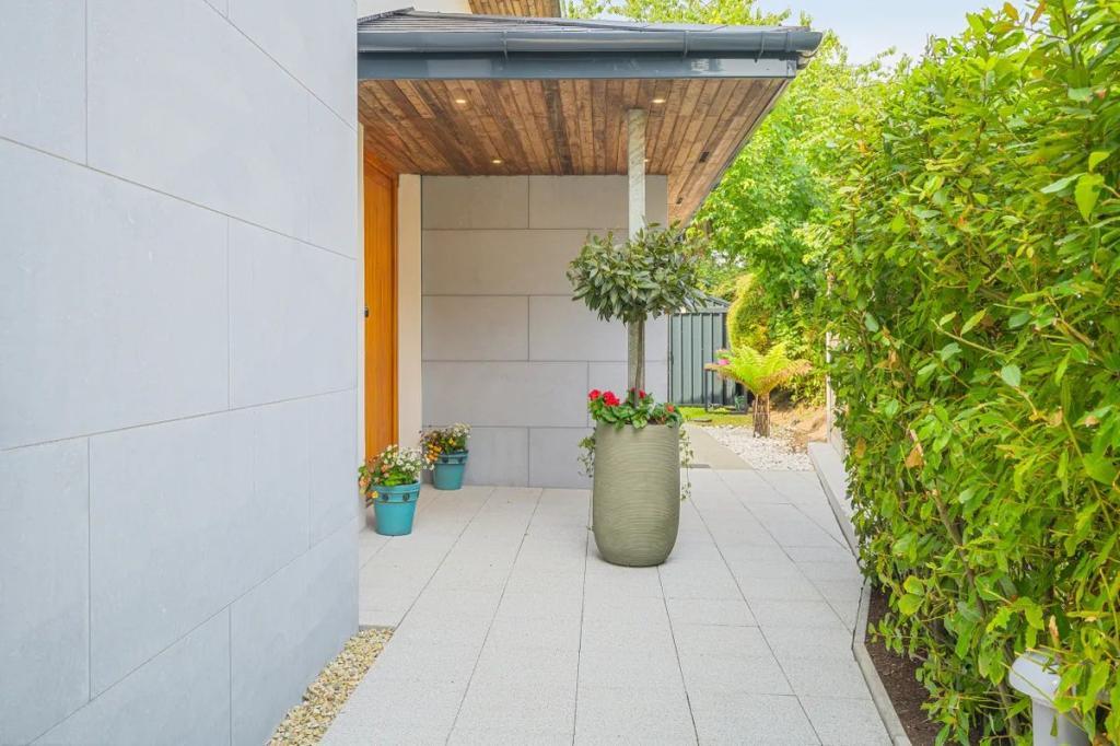 This home is a five/six bedroomed detached offering approx. 3,300 sq. ft of space over two levels. It sits on a site of 0.3 acres and boasts an A2 energy rating. The use of materials at the construction stage ensure that it stands the test of time regardless of emerging trends. For the lay man the amount of thought that has gone into the attention to detail wont be lost but may be misunderstood. As an example, the walnut used in the kitchen is one extensive piece to make sure that the grain ran through uninterrupted from unit to unit. The windows are Nordan designed for their aesthetic beauty, functionality and to withstand the test of time. These are exceptionally good on sound insulation. Now more so than ever purchasers are completely focused on being green friendly and the windows used in this home have an impressive .8u value passive rating. Most materials used within the construction have passive ratings. Set in the grounds of the old orchard which gives its name to Orchard Road close by, No. 1 Millfield enjoys part of the old orchard stone wall as its backdrop. This wall is featured in the courtyard accessed directly from the kitchen and is planted with lavender at its base with water feature to further enhance that feeling of relaxation and privacy.
