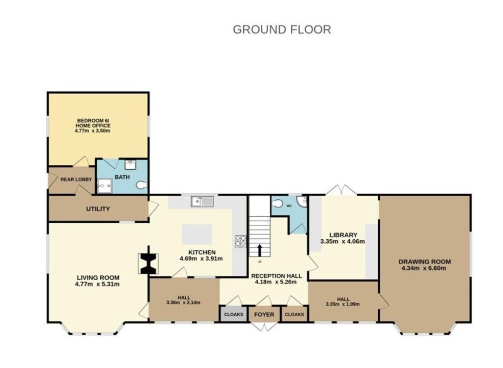 Bedroom 6/Home Office 4.77m x 3.50m. A large room situated to the rear of the property with built-in wardrobe and suitable for a variety of uses.