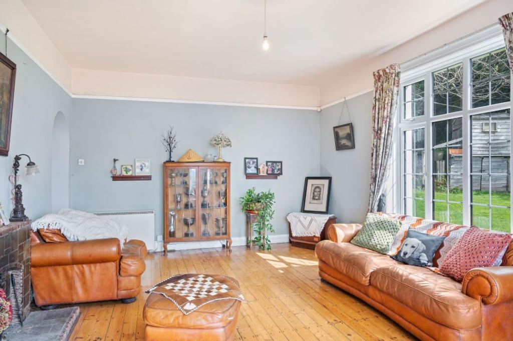 Drawing Room 6.60m x 4.34m. The drawing room benefits from its dual aspect which floods the space with natural light. An ornate open fireplace with a tiled hearth and surround serves as one of the room’s focal points, adding to its charm. The rooms features are further emphasised by the magnificent views from the beautiful bay window overlooking the Lee Valley and beyond, solid wood floors, antique door, bureau cabinet and intricate cornicing.