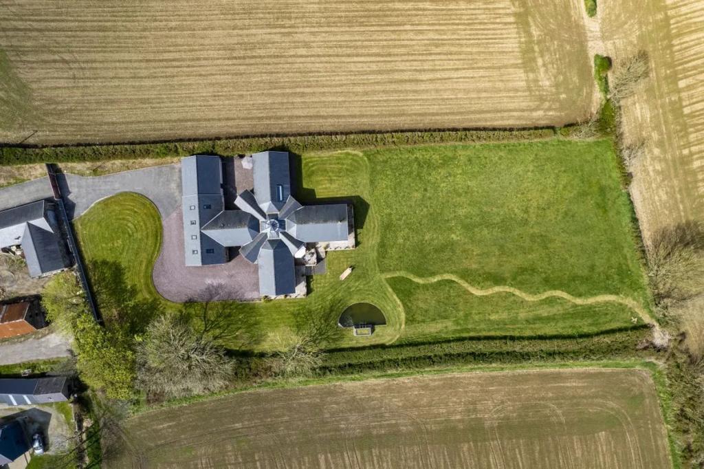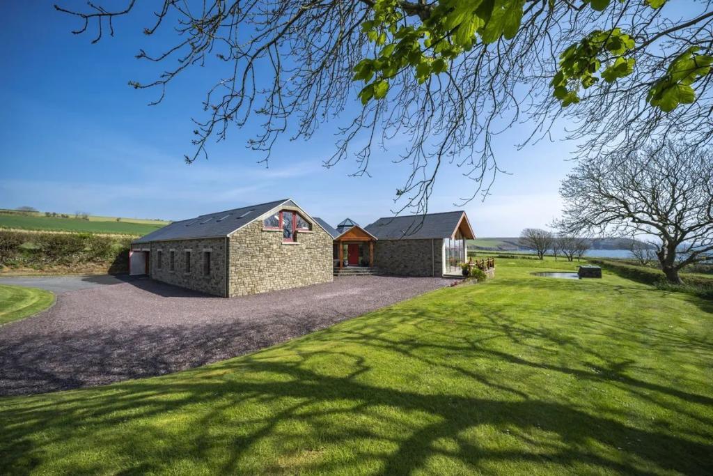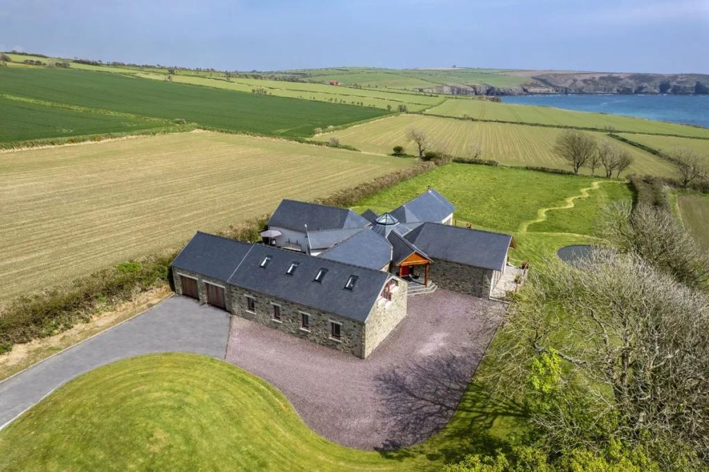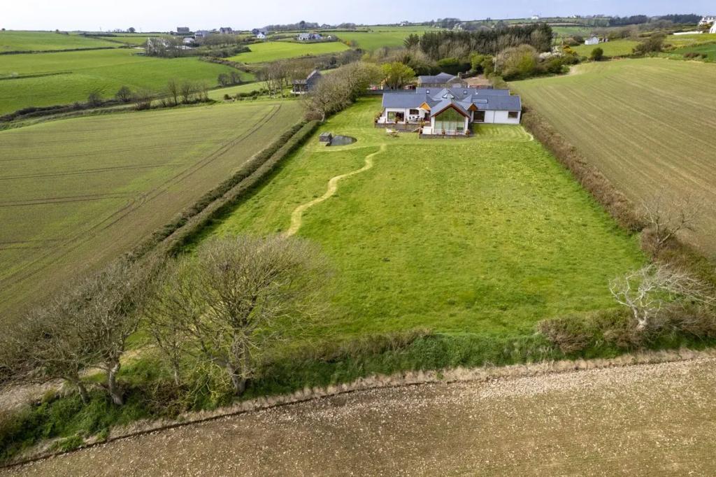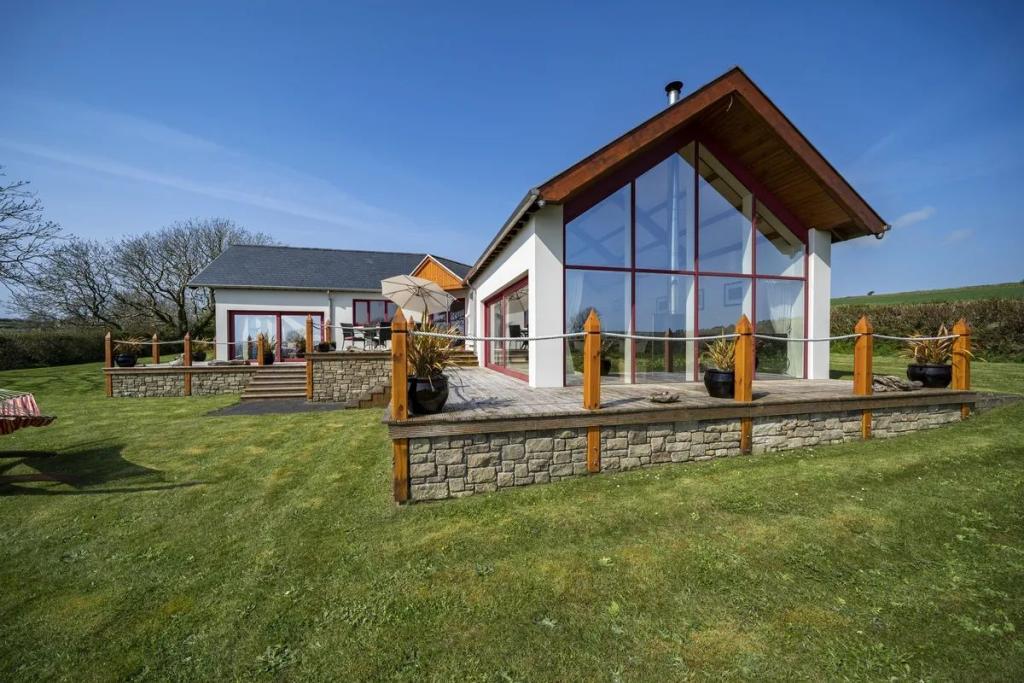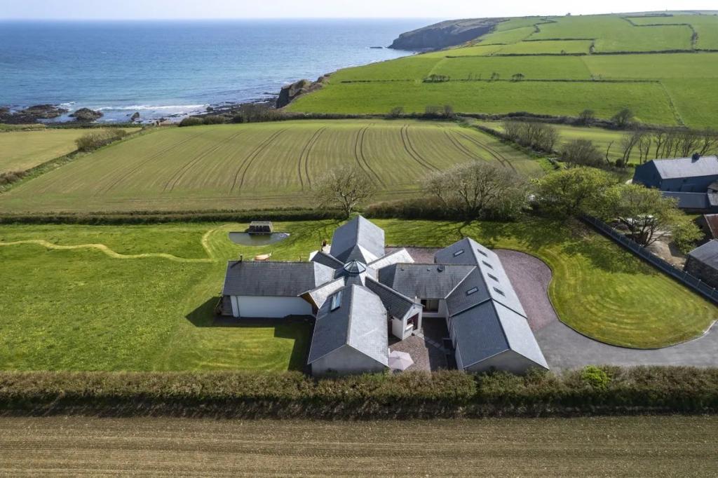 This unique star shaped home offers a rare opportunity to acquire a stunning coastal home finished to an exacting standard with beautiful uninterrupted sea and countryside views. Located on a mature site at the end of a quiet cul-de-sac the property features outstanding privacy and direct access to a secluded beach for swimming and kayaking.