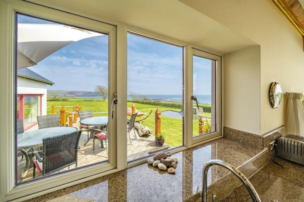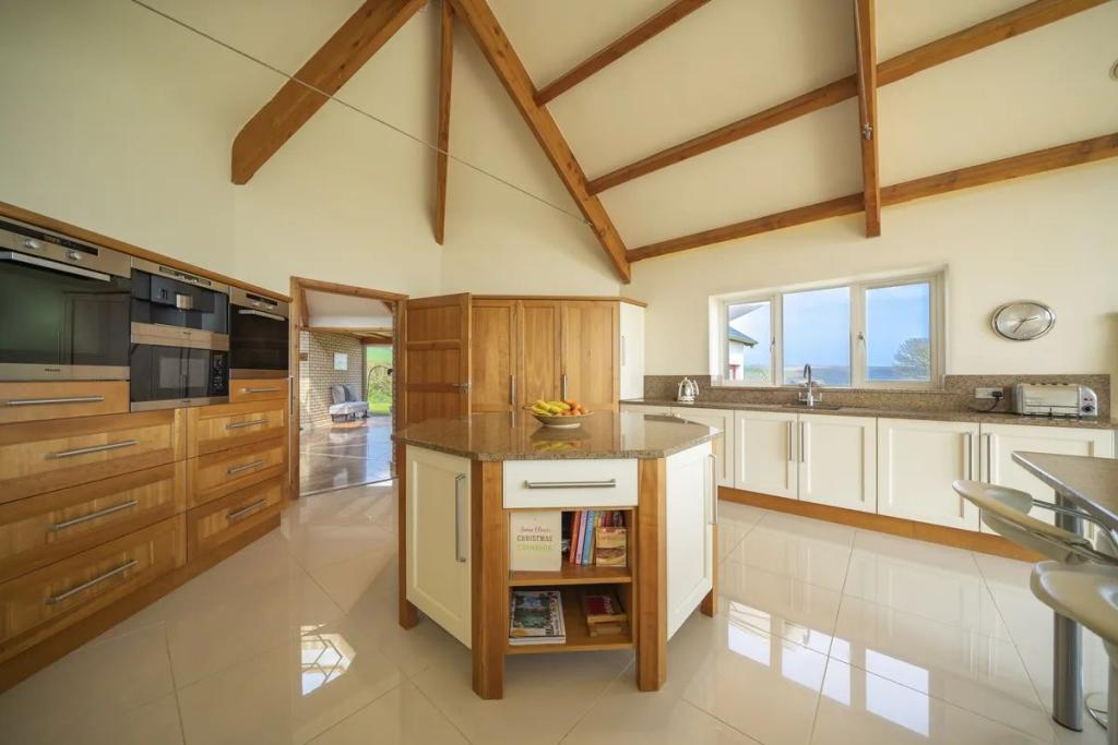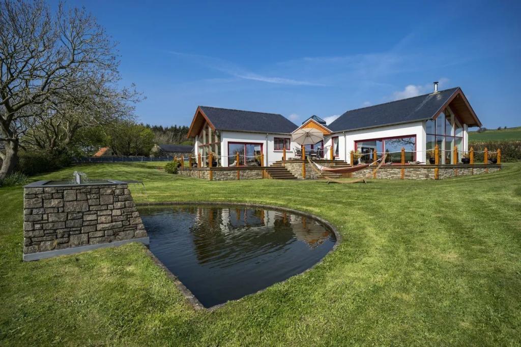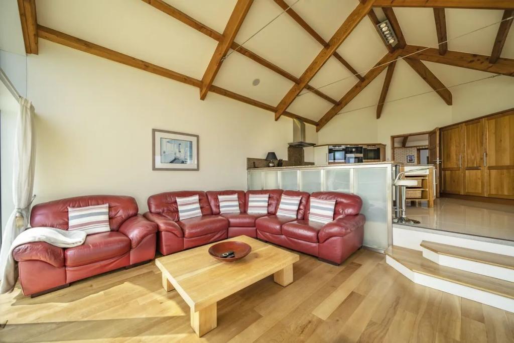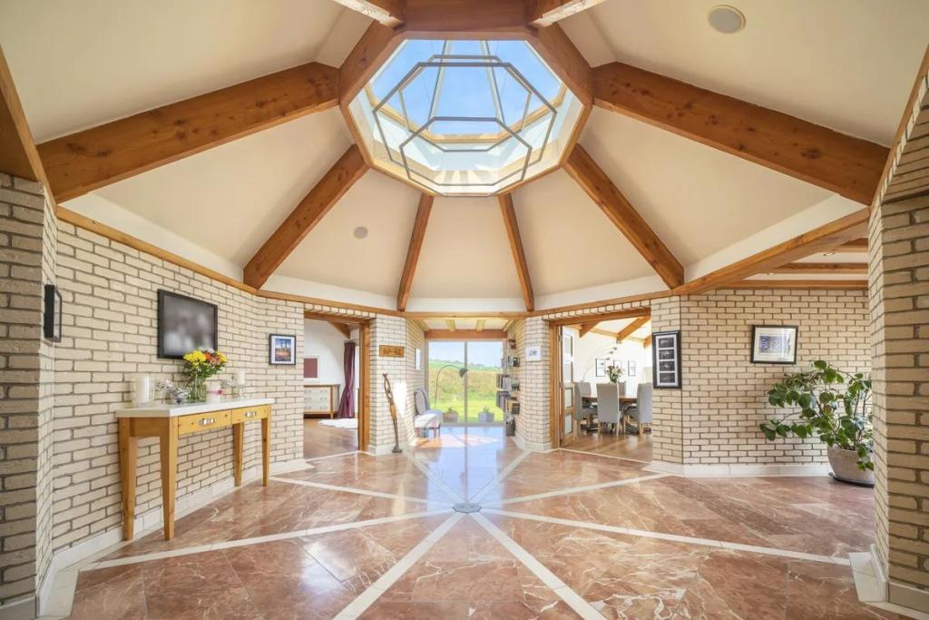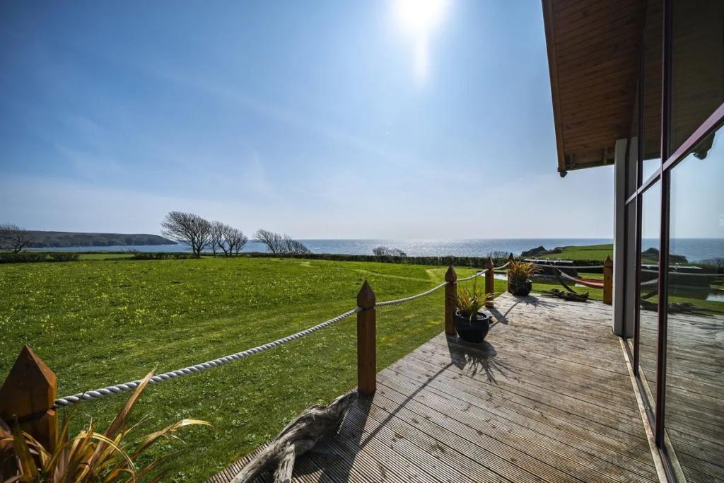 This unique star shaped home offers a rare opportunity to acquire a stunning coastal home finished to an exacting standard with beautiful uninterrupted sea and countryside views. Located on a mature site at the end of a quiet cul-de-sac the property features outstanding privacy and direct access to a secluded beach for swimming and kayaking.