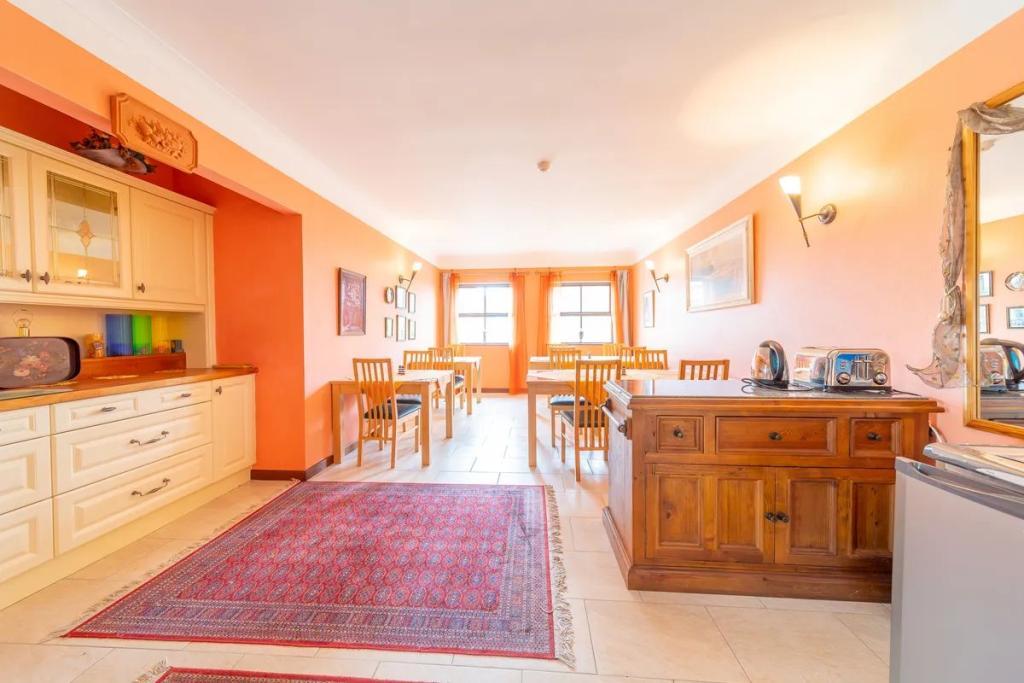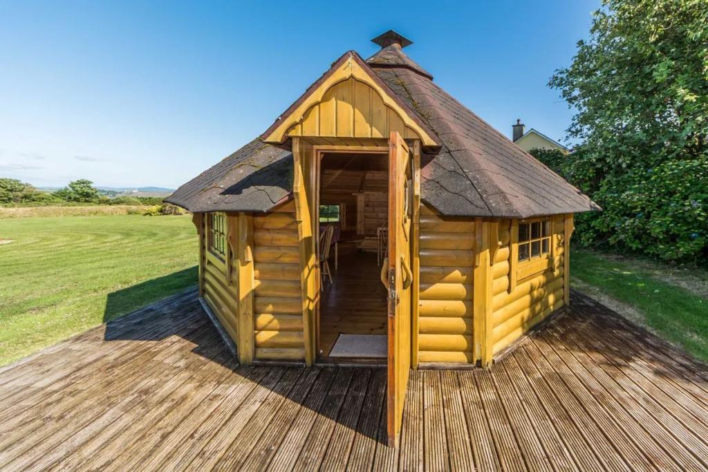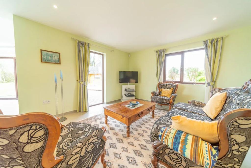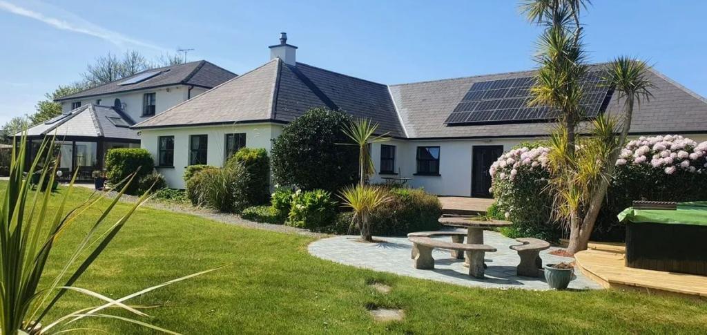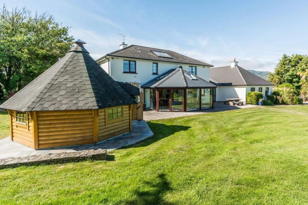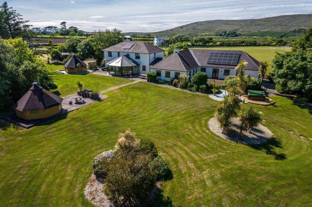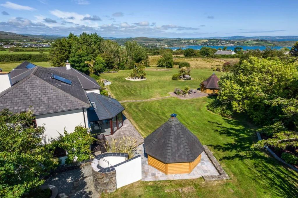 Corthna Lodge stands amidst 2.4 acres of mature gardens and commands a fine view, in particular out to the south, of the sea and islands that lie inside Baltimore, Sherkin Island and Cape Clear. This is a unique property that should appeal to anyone desirous of a substantial family home.... There are many rooms and many places wherein to be part of a family, yet offering a large degree of privacy. It has the perfect layout, having six en-suite bedrooms, a drawing room and dining room exclusively for guests, all contained within a building which adjoins the Main House. There are two Finnish Log Cabins within the garden area: one being equipped with a sauna, internal seating and an outdoor shower, while the other has an integrated barbecue and seating area for up to fourteen people.