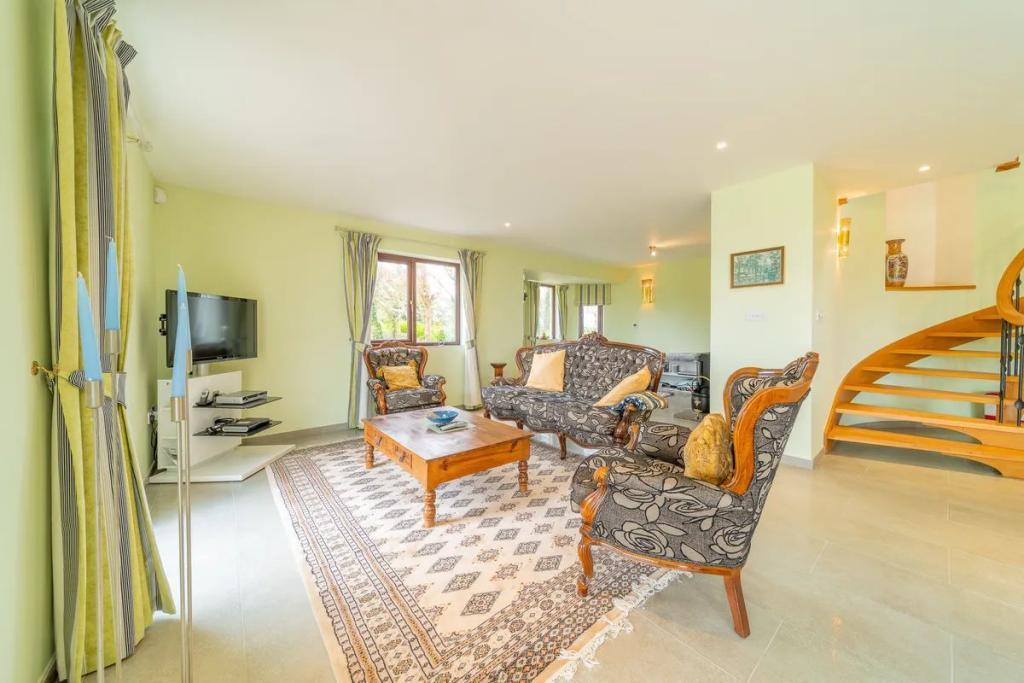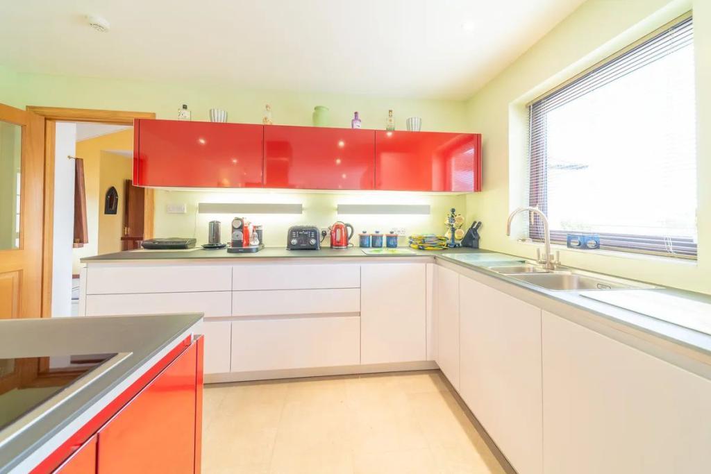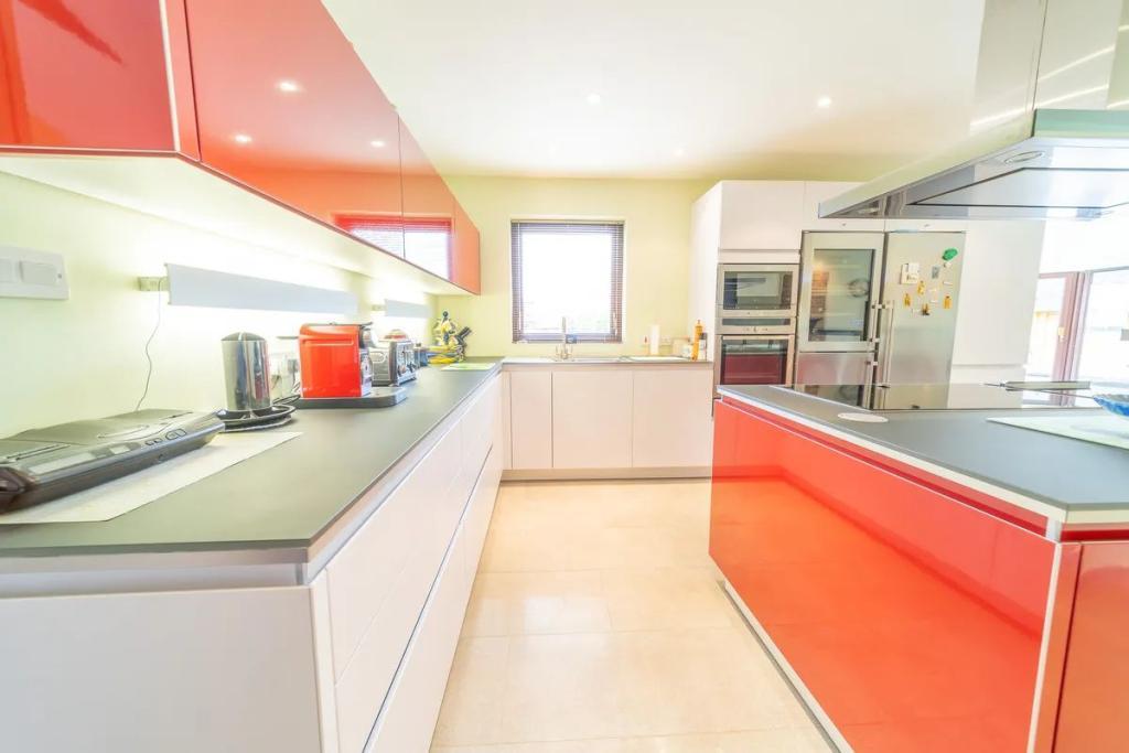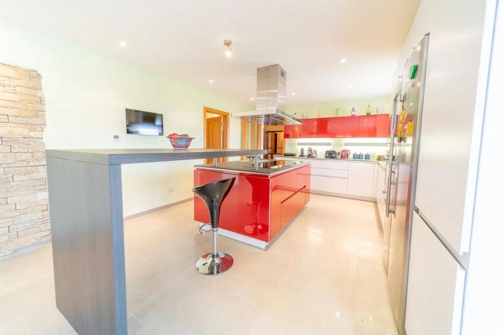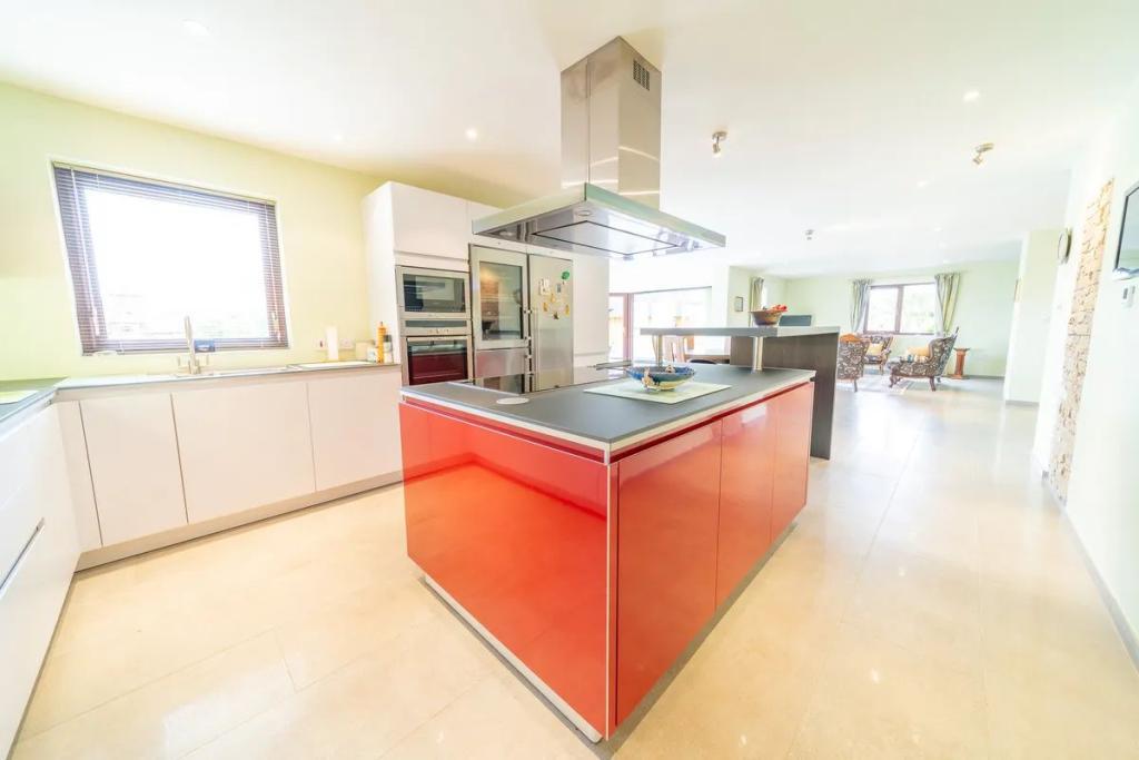 Back inside, the property features a Pronorm kitchen with a modern island unit. All modern appliances have been installed including built in oven and microwave, plate warmer, large freezer with ice cream maker and a wine cooler. The utility area is equipped with wall shelving, worktops and sink.