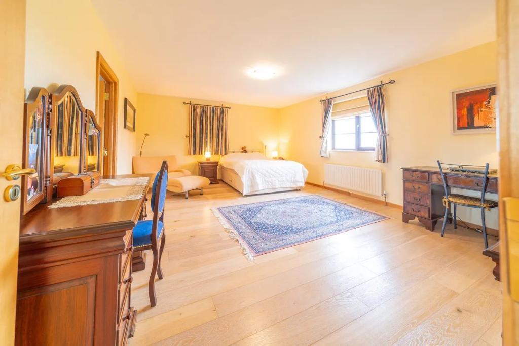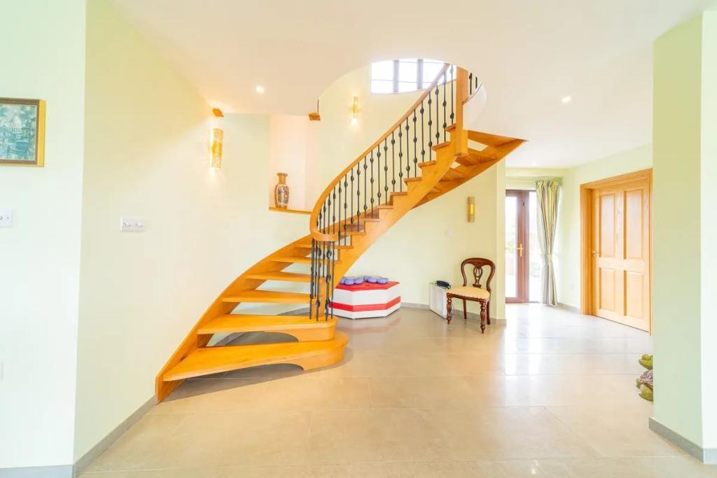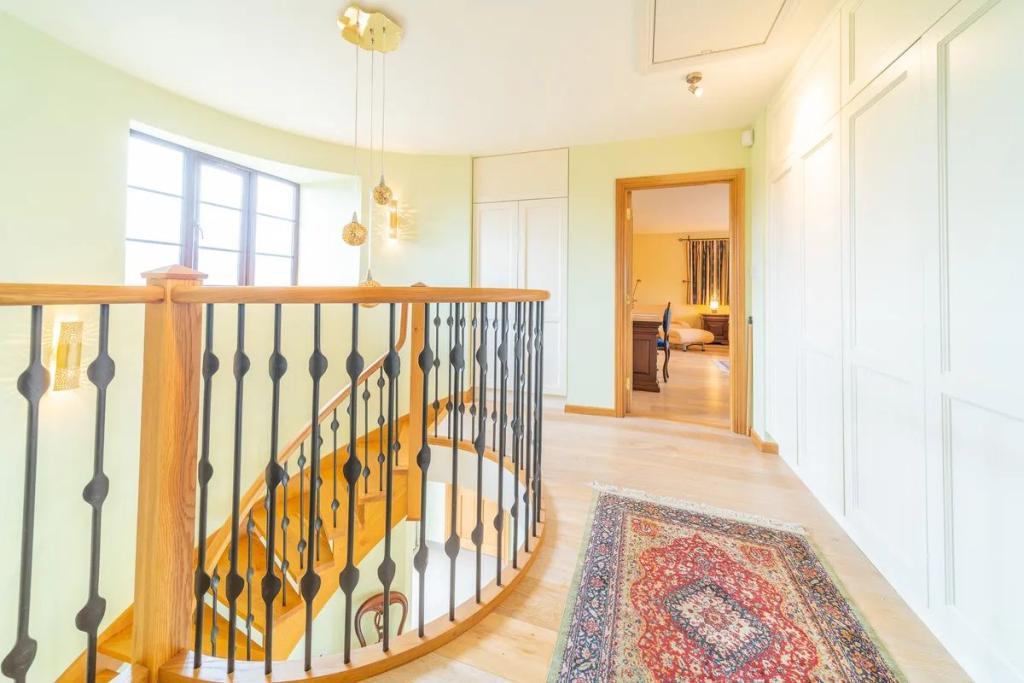 The first floor is accessed by a magnificent curved Oak staircase bringing one onto a landing with a large storage area and two large en-suite bedrooms. The master also has a large walk in wardrobe. The attic areas have been highly insulated and floored and there is also a high level of insulation throughout the rest of the property.