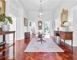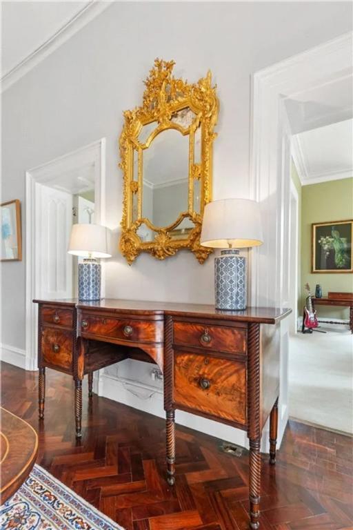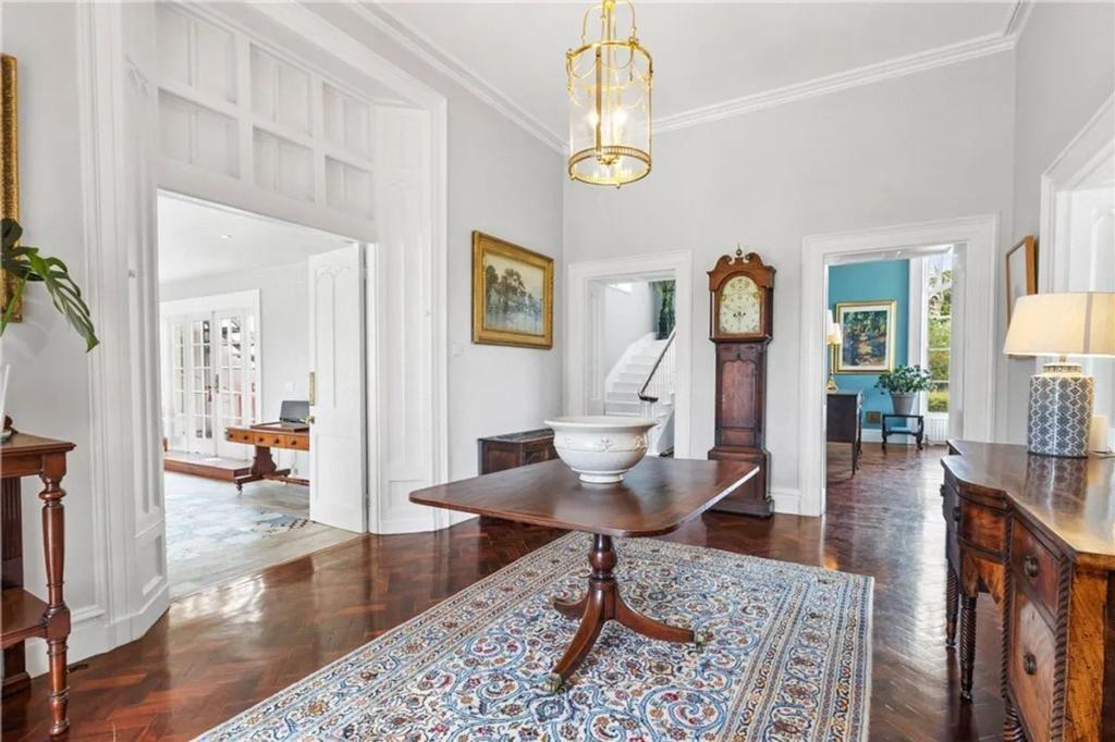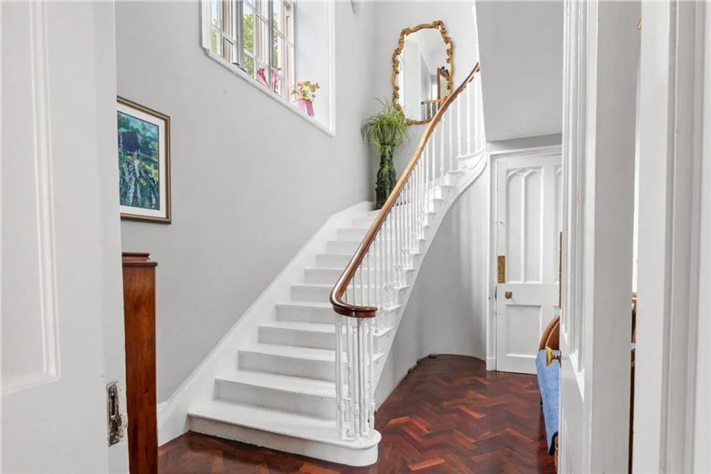 Hallway (6.50m x 4.80m )Mahogany parquet floor, high ceiling, original mouldings, original joinery.