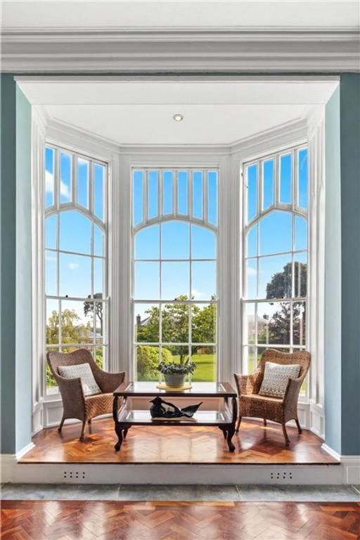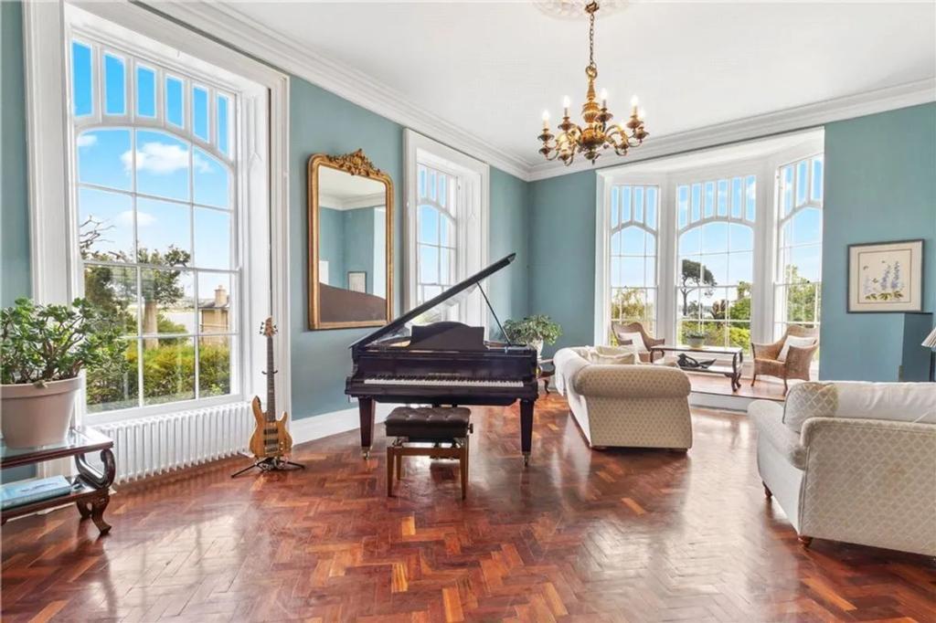 Music Room (7.30m x 5.60m )Mahogany parquet flooring, featured bay window, featured marble fireplace, original mouldings, dual aspect.