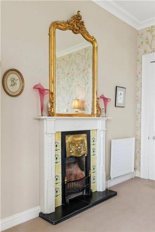 Lounge (6.60m x 6.40m )Carpet flooring, marble fireplace, box sash windows which are all functioning, original plaster mouldings.