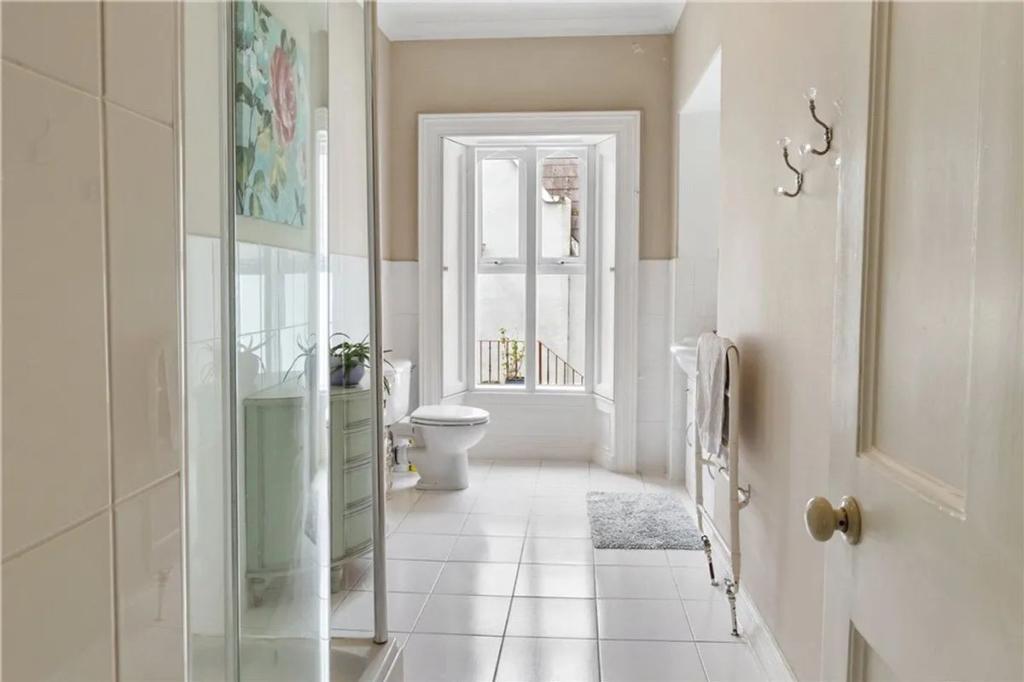 Ensuite Bathroom (2.70m x 2.00m )Tiled floor with shower, modern bathroom suite with high ceilings.
