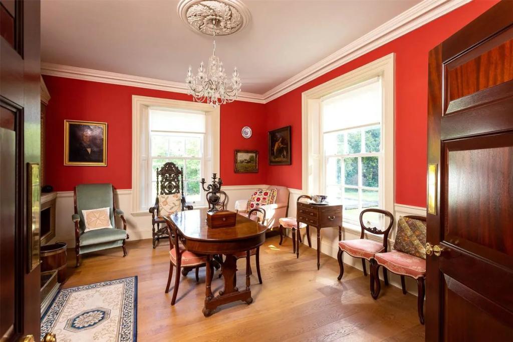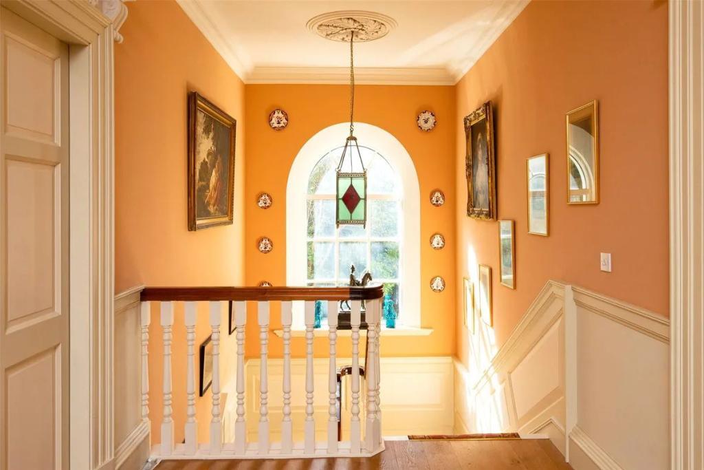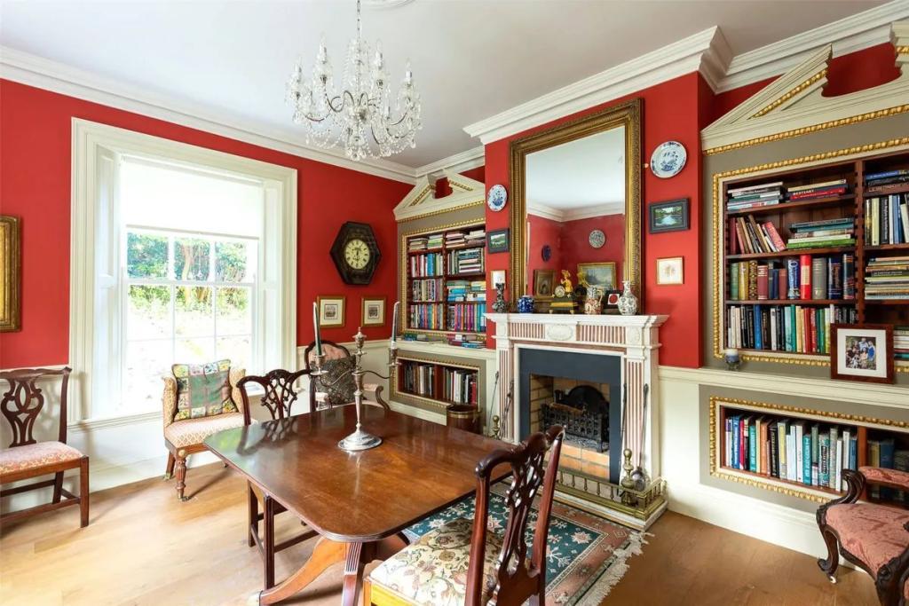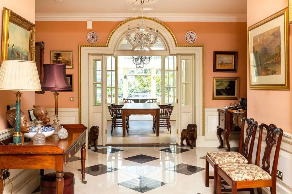 A wide and elegant entrance hall greets you at Monks Priory. With its fan-lit door, polished tile floor, panelling, architraves and generous proportions, it opens to a library and sitting room at the front of the house. These perfectly matched reception rooms are both dual aspect, with fireplaces and Period style detailing.