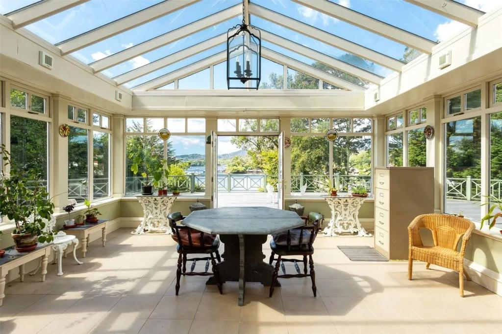Sheltered from the road by mature planting, Monks Priory is a completely private enclave that opens up to one of Ireland s most spectacular views. A large gravelled parking area is to the front, leading to stone steps and a small lawned area that welcomes you to your door. Further lawns, mature planting and patios surround the house, where you will also find a boat house, large greenhouse and a boilerhouse. The greenhouse has warm teracotta floor tiles, and is to a traditional design, making it a fantastic amenity to take advantage of Glengarriff s unique microclimate, and grow fruit, herbs, vegetables and delicate flowers. It is also atmospheric enough to play host to evening gatherings on long summer nights.