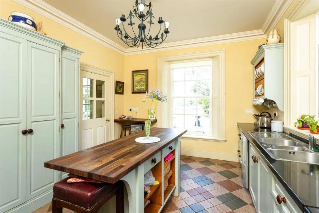 Beyond these, the hall leads to a truly elegant dining room, which in turn opens to a spacious and sunny conservatory a more recent addition to Monks Priory, but utterly in keeping with the Period style charm of the house. A kitchen / breakfast room leads off this, with a further utility space beside. Warmed by a four oven Aga, the kitchen has plenty of space for family and informal suppers. There is also a study at this level. The rooms on the ground floor have 10ft ceilings, giving a sense of space and light throughout.