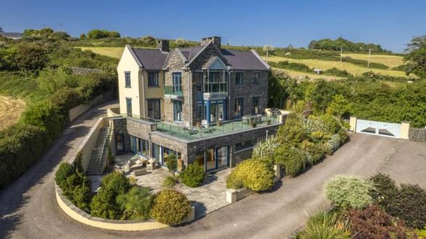 What a beautiful house perched up on the hill overlooking the bay in Kinsale, lavish garden, spectacular views...
